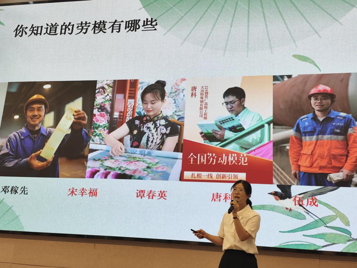 会上,李利老师深入浅出地阐释了劳模精神的内涵、传承与时代价值,结合我校优秀毕业生代表彭嘉骏、宋梓梁的成长案例,讲述了他们在校勤学苦练打基础、在岗钻研创新克难关的奋斗历程。新时代要求劳动者成为“知识型、技能型、创新型 ”人才,必须不断学习新知、掌握新技、勇于创新。她勉励同学们:“重视实训、赛练结合;用心上课、认真作业;以劳模为榜样,积极践行 。”“职业教育没有天花板,深耕专业,人人皆可成就大国工匠! ”